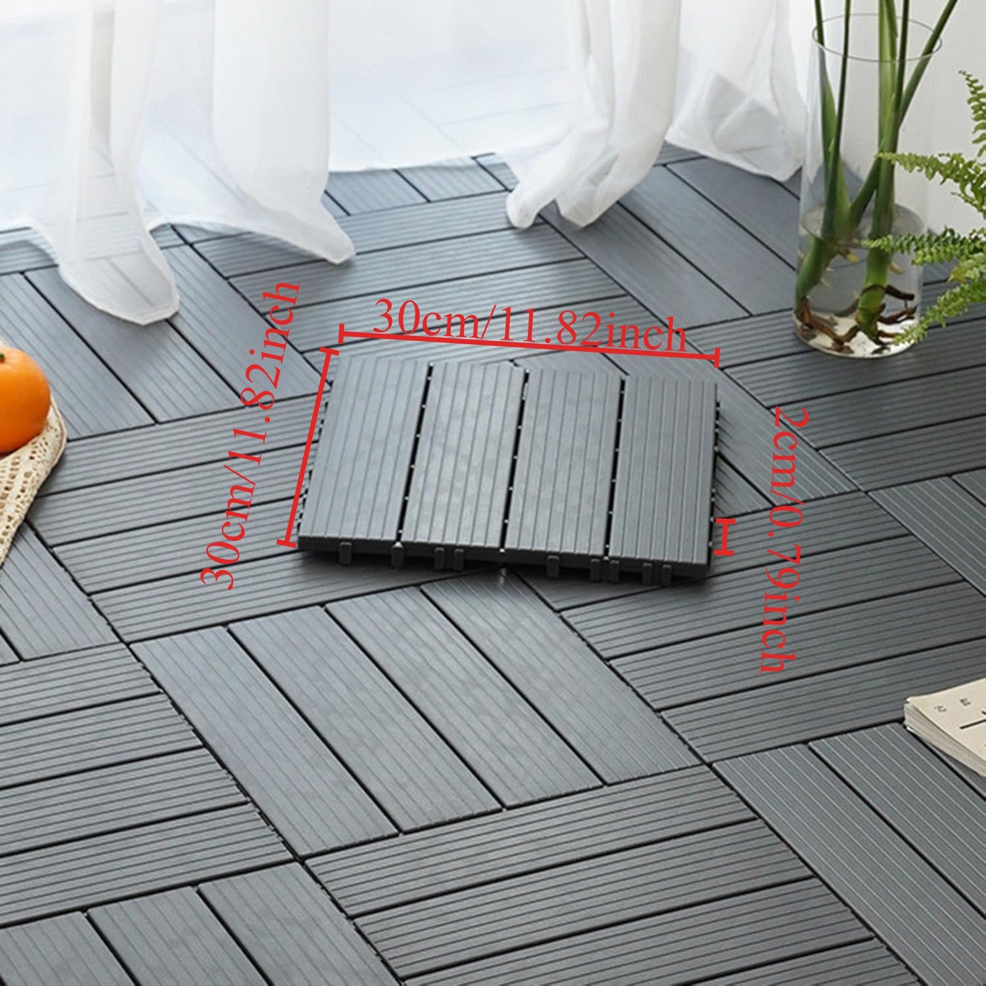 All-Weather Durability: These 40pcs 12"x12" plastic interlocking deck tiles are built to withstand all types of weather conditions. Whether it's rain, sun, or snow, they remain strong and stable. For example, they won't warp or crack in extreme temperatures, ensuring long-lasting performance throughout the year.Customizable and Cuttable: The square patio floor tiles can be easily cut to fit any space or shape. You have the flexibility to create unique flooring patterns and designs to suit your specific needs. Imagine customizing the layout for your patio or outdoor area to make it truly one-of-a-kind.Waterproof and Easy Maintenance: The waterproof feature of these plastic outdoor flooring tiles makes them ideal for wet areas. They are effortless to clean - simply wipe them down with a damp cloth. This saves you time and effort in maintaining a clean and attractive outdoor space.Quick and Simple Installation: Interlocking design allows for fast and hassle-free installation. No need for complex tools or professional help. Just snap the tiles together and you'll have a beautiful new flooring in no time. It's perfect for DIY enthusiasts.Stylish Grey Color: The elegant grey color adds a modern and sophisticated touch to your outdoor space. It blends well with various decor styles and enhances the overall aesthetic. Whether it's for a patio, deck, or poolside area, these tiles will transform your outdoor flooring into a visually appealing area.