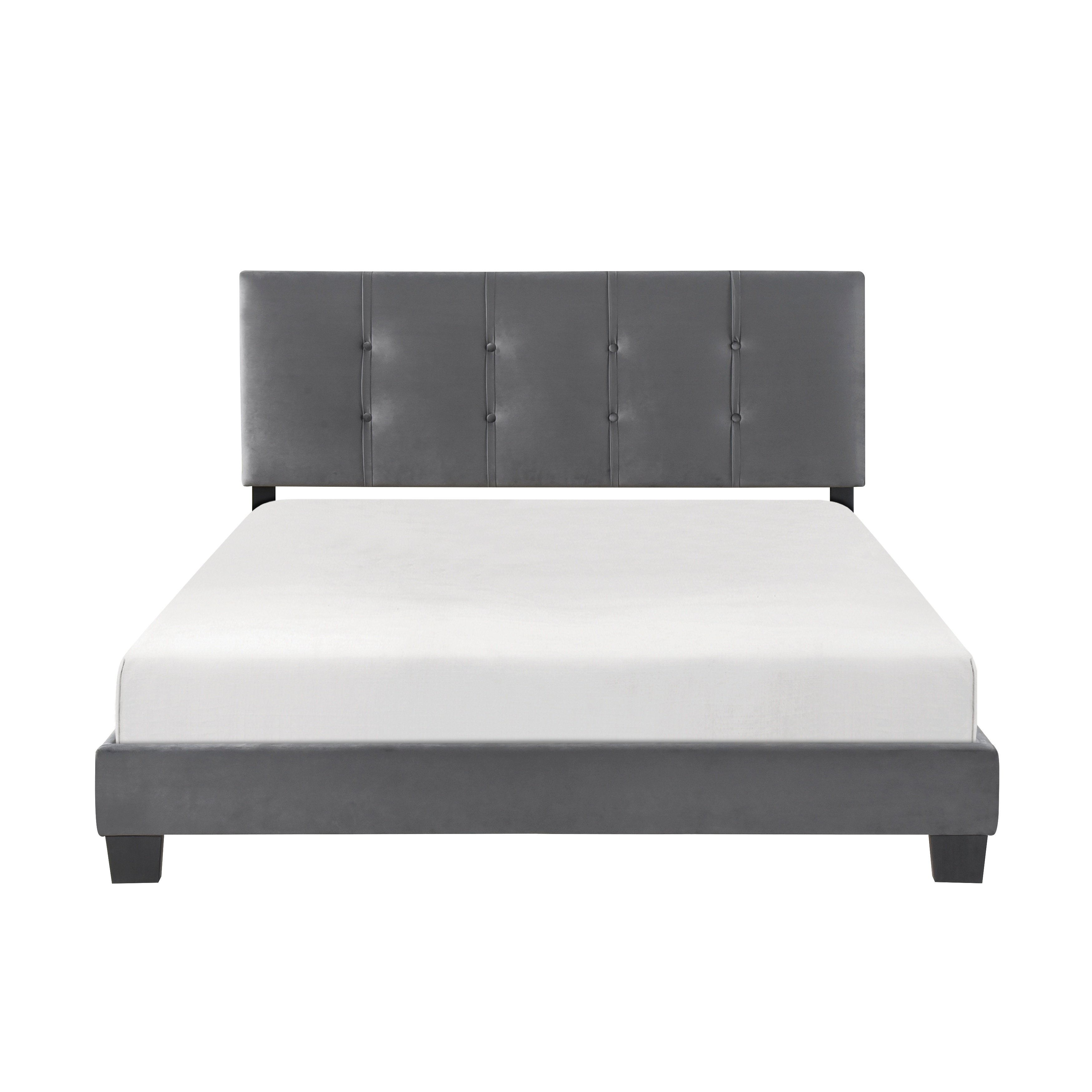 Providing convenient sleep space within your home is effectively solved with the addition of the Newberry Collection. Dark gray velvet fabric upholstery covers the queen upholstered bed for compatible decorative pairing to your home's décor with its button-tufted accenting providing classic detail. The bed's adjustable-height headboard, low-profile footboard, and rails are packaged within one box for ease of shipment.PRODUCT DIMENSIONS: Overall Dimension: 64" x 85" x 39.5" - 42.5"HHeadboard width: 64"Headboard height: 39.5/42.5"Footboard width: 62"Footboard height: 10"Rail to floor: 3.5"Listing Includes: One Queen Size Platform Bed Only.Mattress: Not included.Simple Assembly Require.