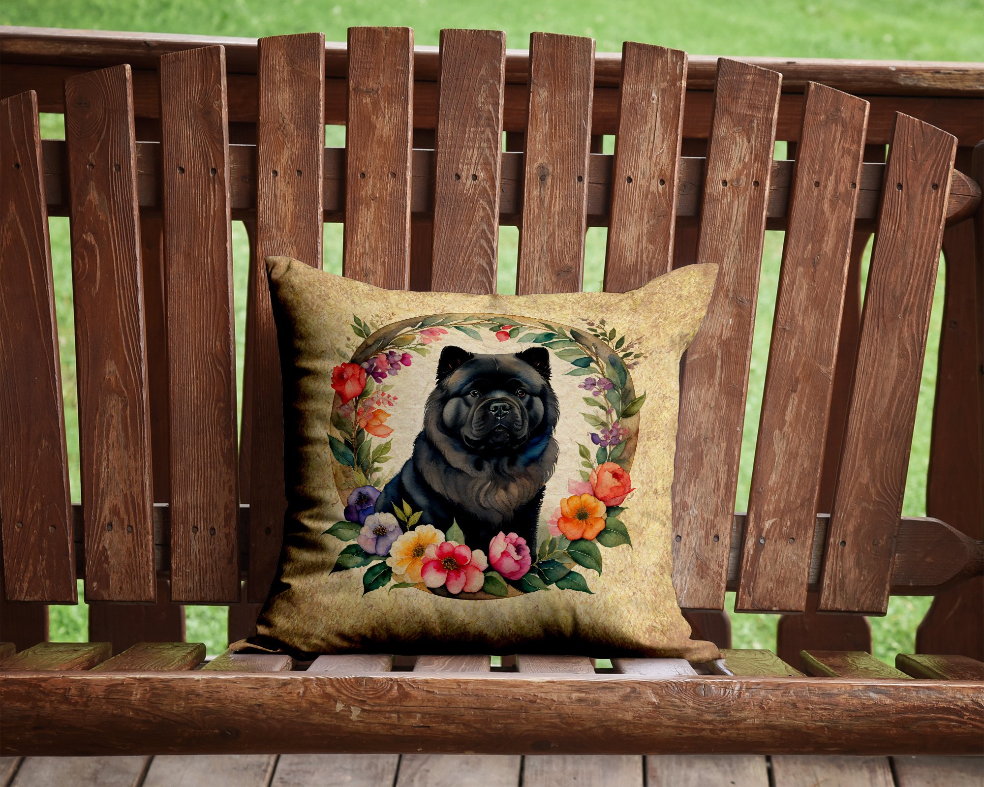 Home > Black Chow Chow and Flowers Throw Pillow Machine Washable, Indoor Outdoor Decorative Pillow for Couch, Bed or Patio, 14Hx14W