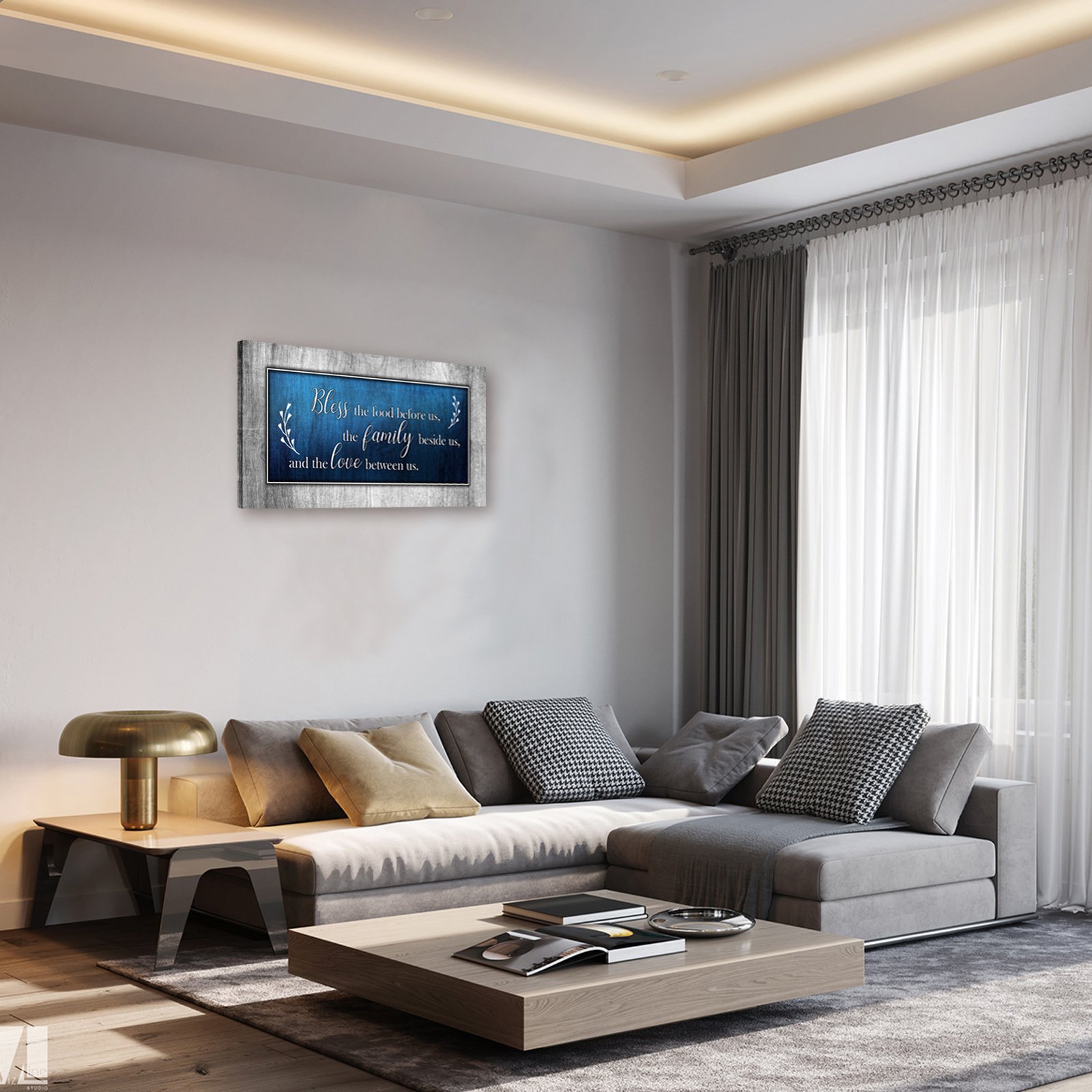 Home > Christian Wall Art Decor Blue and Grey Canvas Prints Bless The Food Quote Wall Pictures Framed Artwork for Home Living Room Dining Room Kitchen Decora
