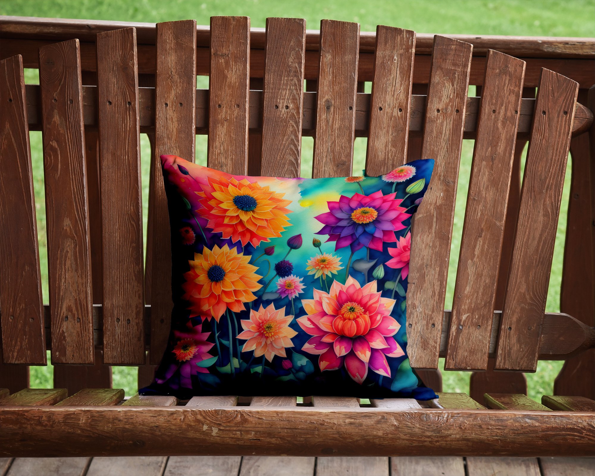 Home > Colorful Dahlias Throw Pillow Machine Washable, Indoor Outdoor Decorative Pillow for Couch, Bed or Patio, 14Hx14W