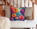 Colorful Dahlias Throw Pillow Machine Washable, Indoor Outdoor Decorative Pillow for Couch, Bed or Patio, 14Hx14W