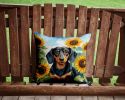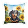 Home > Dachshund in Sunflowers Throw Pillow Machine Washable, Indoor Outdoor Decorative Pillow for Couch, Bed or Patio, 14Hx14W