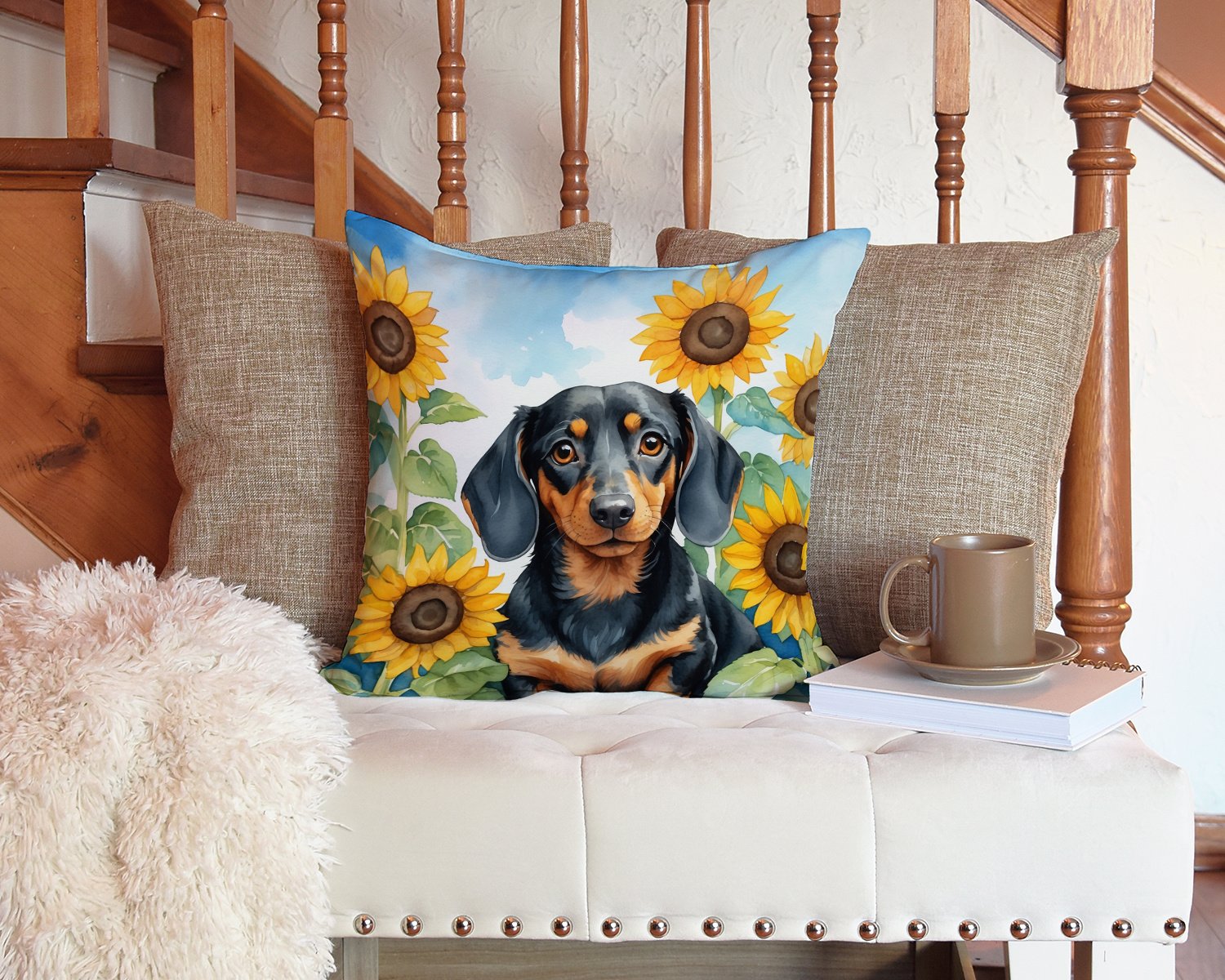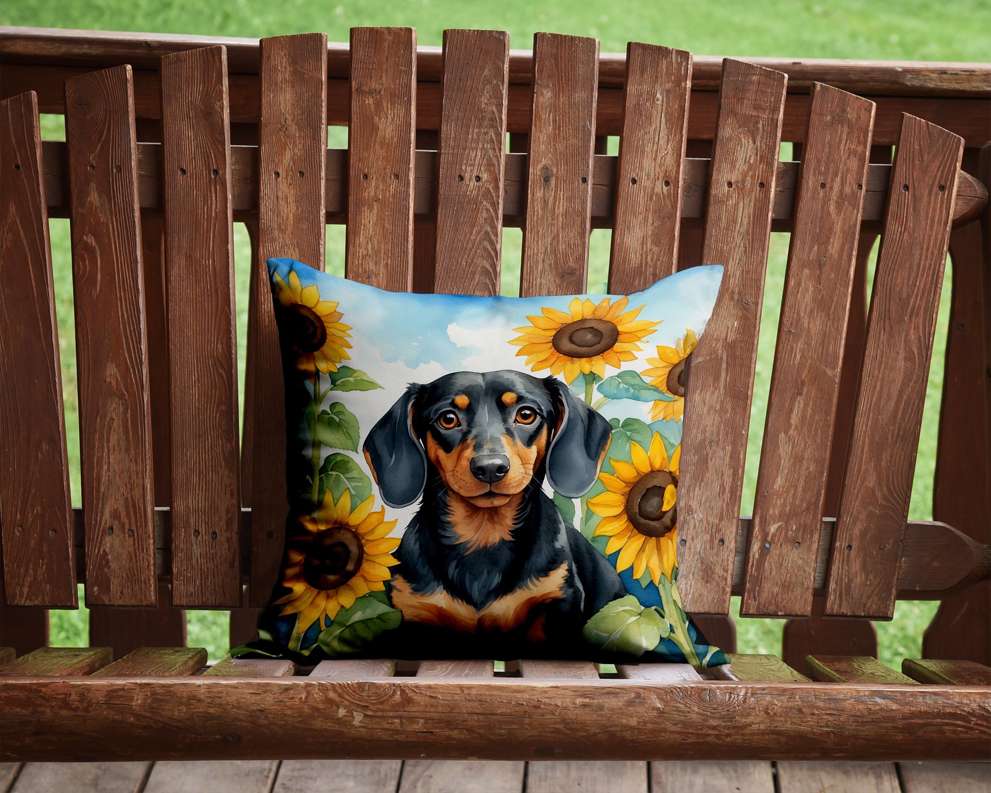Dachshund in Sunflowers Throw Pillow Machine Washable, Indoor Outdoor Decorative Pillow for Couch, Bed or Patio, 14Hx14W Dachshund in Sunflowers Throw Pillow Machine Washable, Indoor Outdoor Decorative Pillow for Couch, Bed or Patio, 14Hx14W Dachshund in Sunflowers Throw Pillow Machine Washable, Indoor Outdoor Decorative Pillow for Couch, Bed or Patio, 14Hx14W