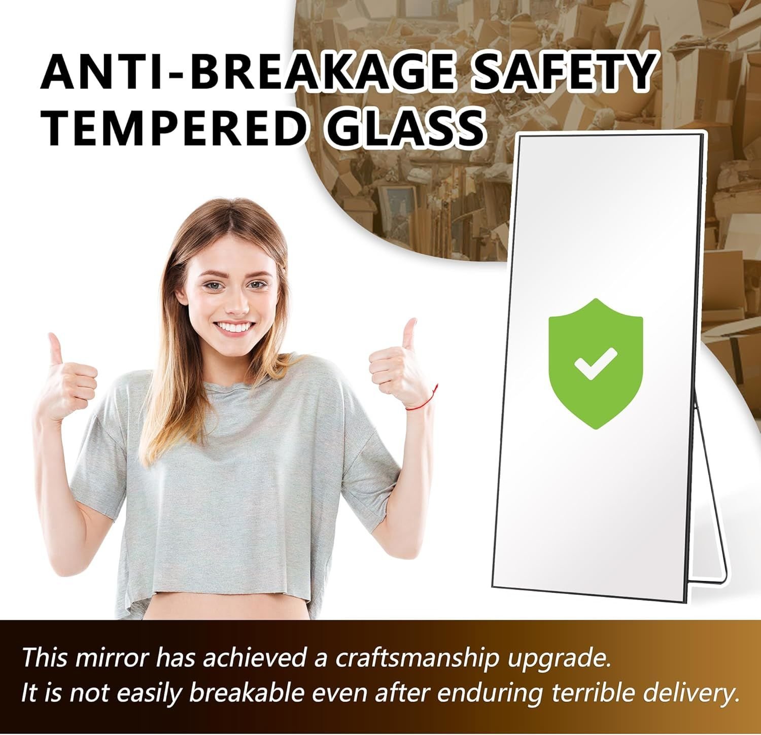 90% GlassPerfect Size for Your Space: Our full-length mirror is designed to fit seamlessly into any room, bringing an elegant and bright touch to your decor. It's the ideal body mirror for assessing your entire outfit and appearance.HD Reflection: Crafted with high-definition glass, our floor mirror offers a flawless reflection, making it perfect for self-evaluation and capturing fantastic photos.Elegant Frame Design: The stylish frame of our full length mirror not only enhances the aesthetics of your room but also adds a touch of charm to your interior decor, turning it into a work of art that brightens your home every day.Versatile & Functional: Whether it's in your bedroom, hallway, dressing room, or living room, this standing mirror fits effortlessly into various spaces, adding functionality and style to your home.Easy Installation: This full mirror arrives fully assembled and is easy to install for your needs. With the option for leaning or wall mounting, the large mirror offers flexibility to suit your space and style.