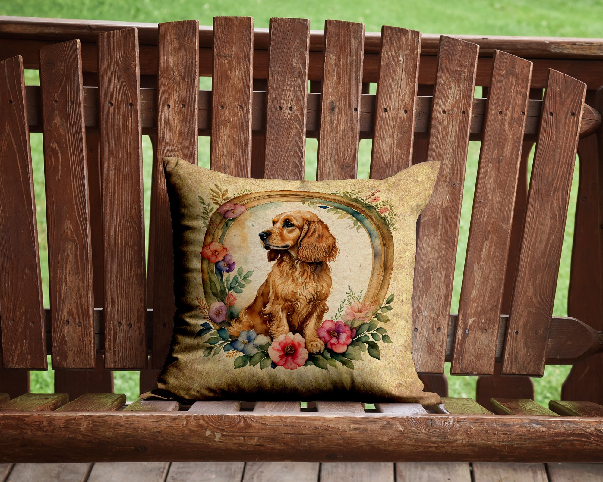 Home > English Cocker Spaniel and Flowers Throw Pillow Machine Washable, Indoor Outdoor Decorative Pillow for Couch, Bed or Patio, 14Hx14W