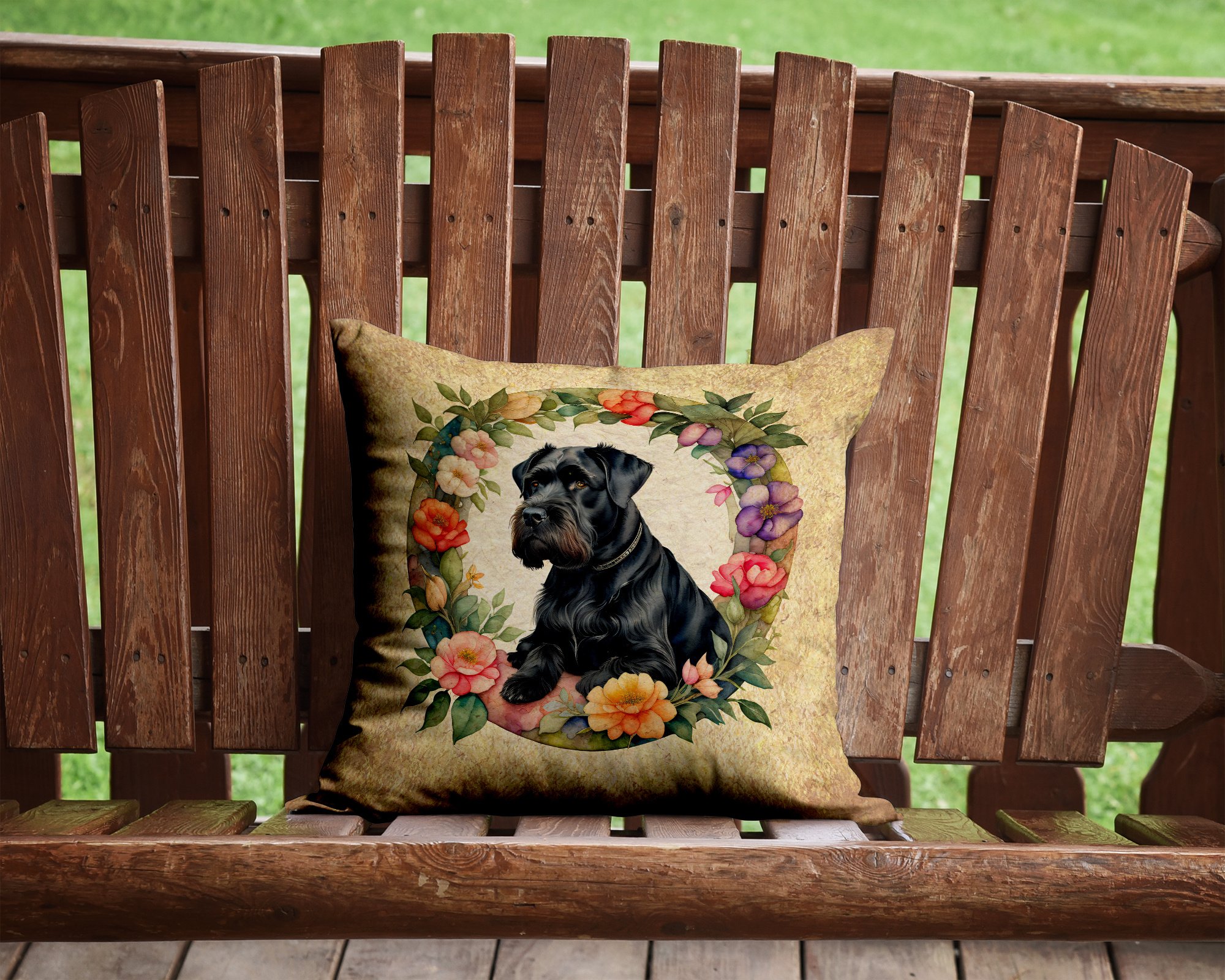 Home > Giant Schnauzer and Flowers Throw Pillow Machine Washable, Indoor Outdoor Decorative Pillow for Couch, Bed or Patio, 14Hx14W