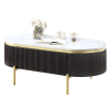 Product Description:-Posh and chic, these rounded tables are reminiscent of the bygone era of Hollywood stars. Infused with Art Deco inspiration, each piece features matte gold frames that hold up the top and bottom shelves. The top is made of faux marble in a glorious white shade with subtle variations in color. The sides add texture to an otherwise sterile piece--reeded panels curve around the corners and conceal a storage drawer for a slick, contemporary look.Product Dimensions:-1x Coffee Table:- 48"L X 24"W X 18"HListing Includes :- 1x Coffee Table Only.Simple Assembly Requires:Features:-GlamDark WalnutMetal, OthersWhite Faux Marble TopGold Steel Legs & FrameCurved Reeded Side PanelsConcealed DrawerBall Bearing Glides