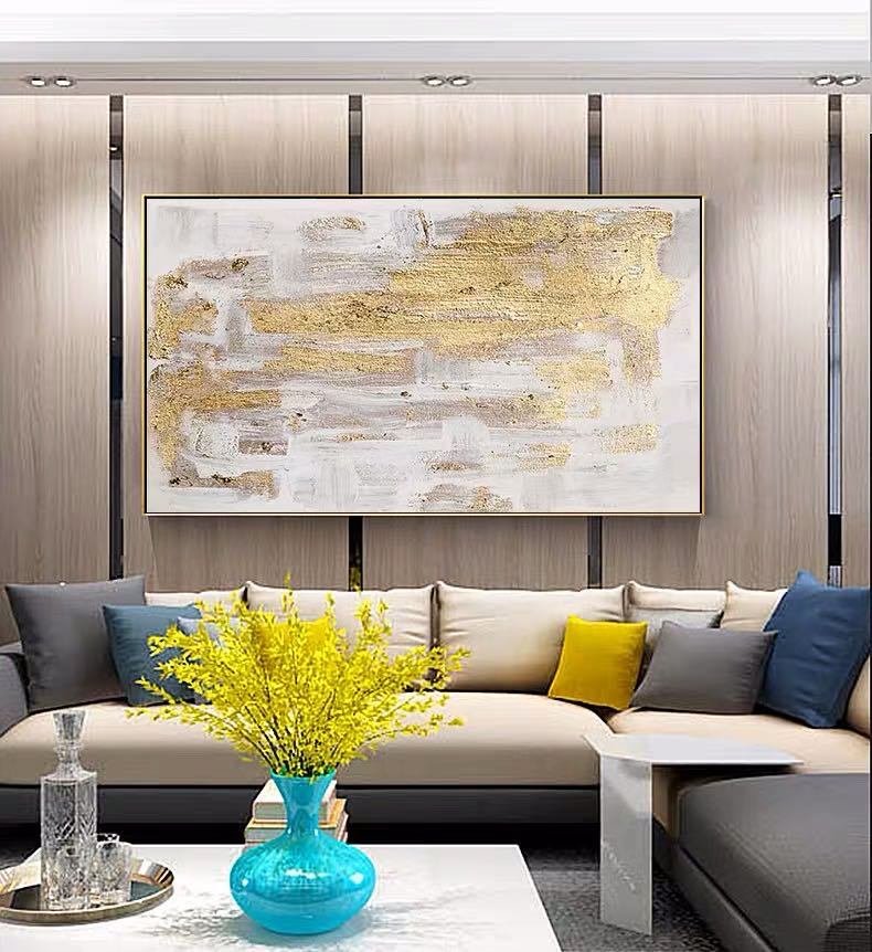 Handmade Gold Foil Abstract Oil Painting Top Selling Wall Art Modern Black and White Color Picture Canvas Home Decor For Living Room No Frame