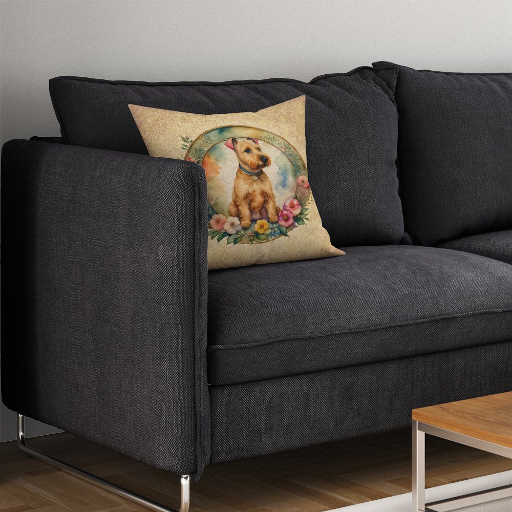 Lakeland Terrier and Flowers Throw Pillow Machine Washable, Indoor Outdoor Decorative Pillow for Couch, Bed or Patio, 14Hx14W