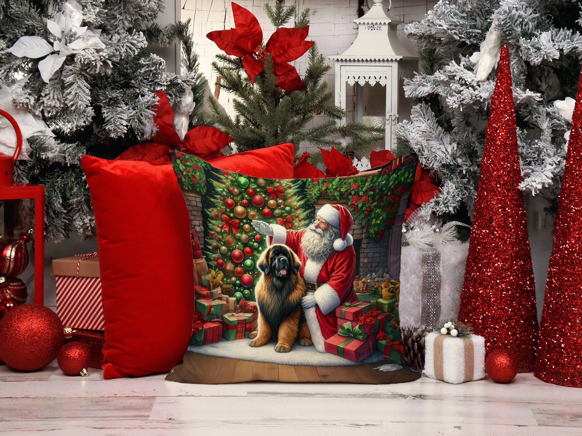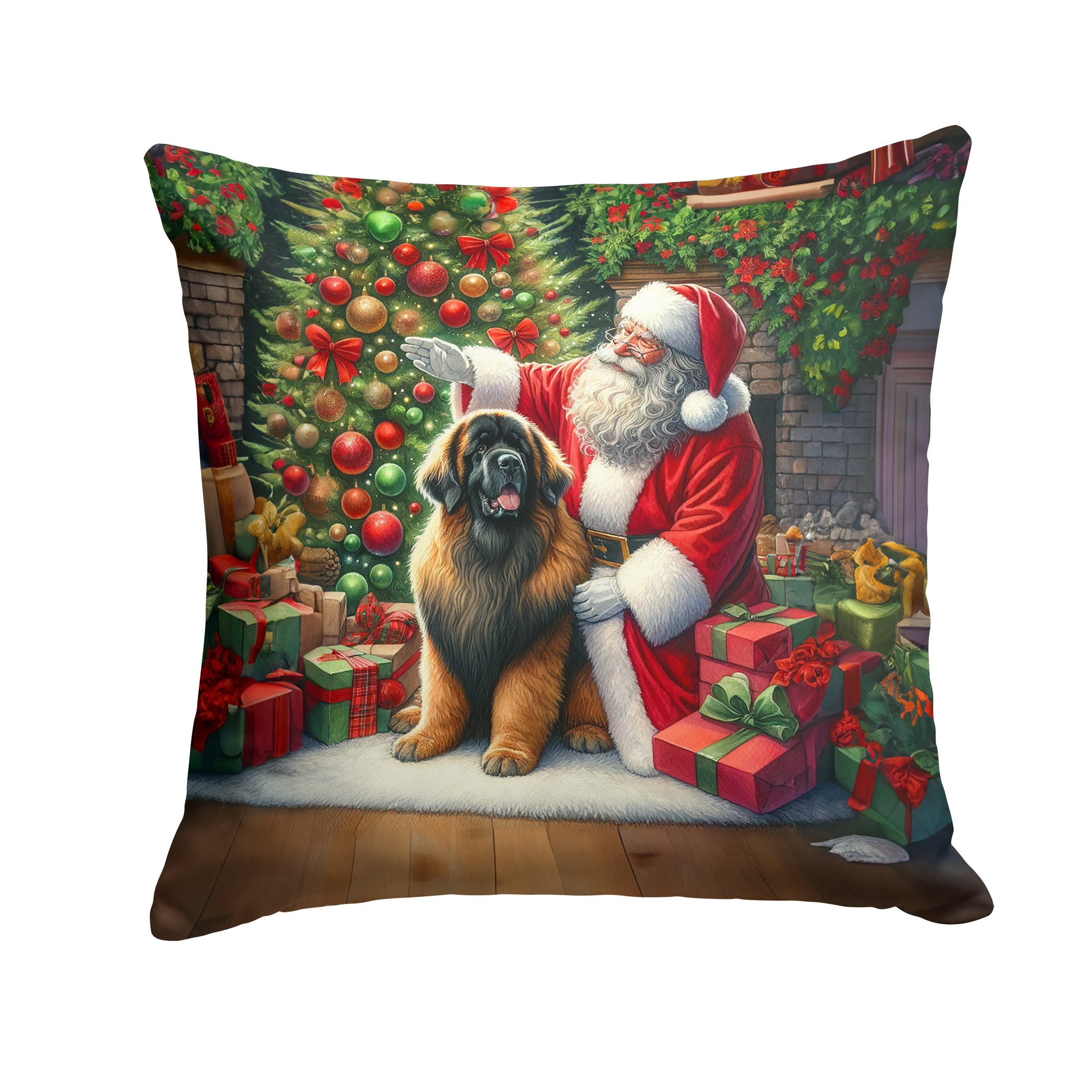 Home > Leonberger and Santa Claus Throw Pillow Machine Washable, Indoor Outdoor Decorative Pillow for Couch, Bed or Patio, 14Hx14W