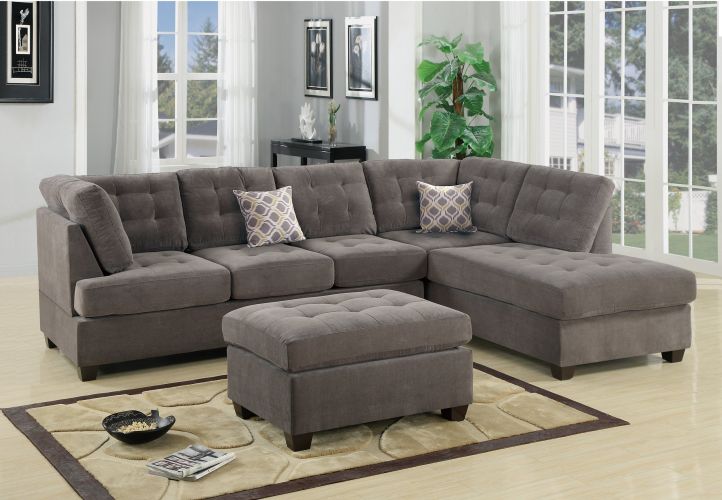 Upholstered in a blend of smooth texture and colors, this 2-piece sectional defines any living space with a well-crafted furnishing for your home. Featuring ample seating space with tufting, a matching cocktail ottoman and accent pillows. Available in waffle suede.