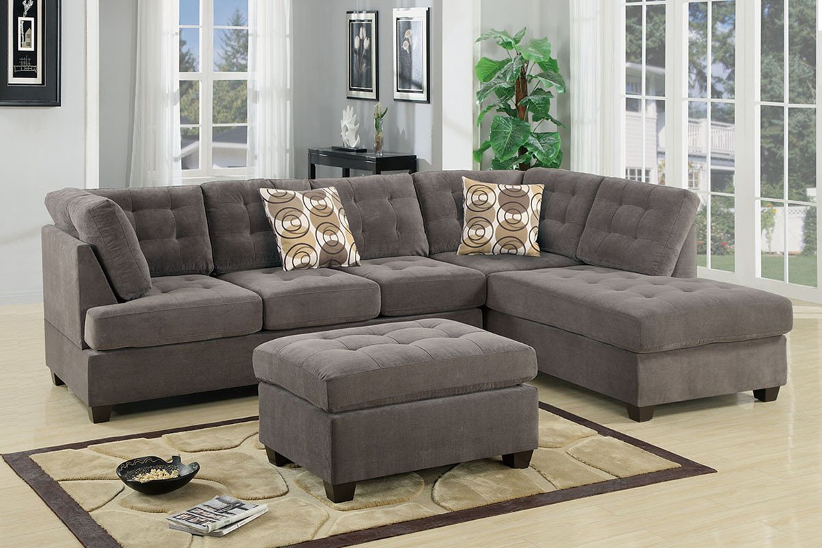 Home > Living Room Sectional Waffle Suede Charcoal Color Sectional Sofa w Pillows Couch Tufted Cushion Contemporary (NO OTTOMAN)