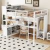 This full size loft bed with armoire has an elegant look that will complement any decor. There is an L-shaped desk and 4 storage compartments under the bed for your different needs. Storage squares at the end of the bed keep items within reach. This full-size metal loft bed with storage will fulfill your needs for resting, working and reading!