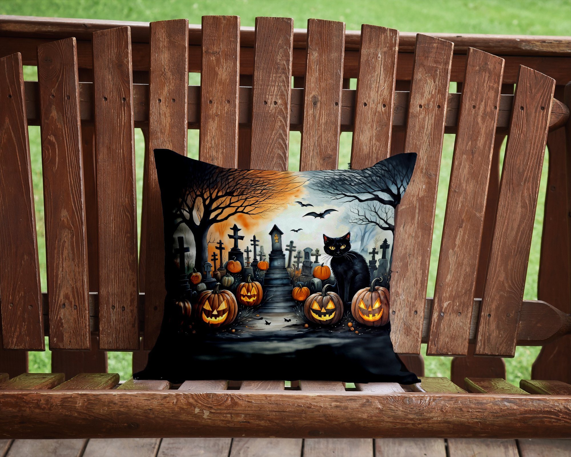 Home > NEW Black Cat Spooky Halloween Throw Pillow Machine Washable, Indoor Outdoor Decorative Pillow for Couch, Bed or Patio, 14Hx14W