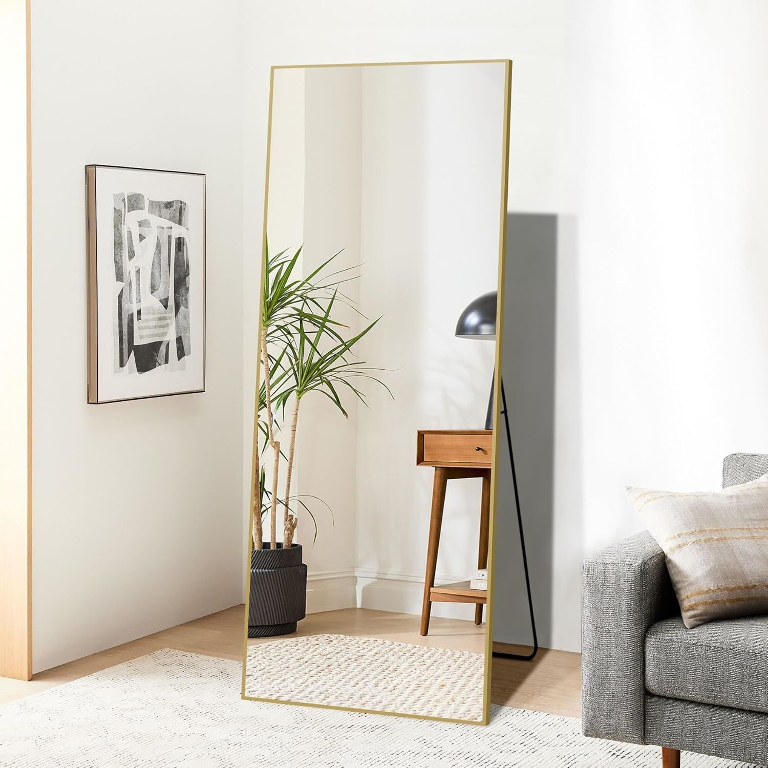 90% GlassPerfect Size for Your Space: Our full-length mirror is designed to fit seamlessly into any room, bringing an elegant and bright touch to your decor. It's the ideal body mirror for assessing your entire outfit and appearance.HD Reflection: Crafted with high-definition glass, our floor mirror offers a flawless reflection, making it perfect for self-evaluation and capturing fantastic photos.Elegant Frame Design: The stylish frame of our full length mirror not only enhances the aesthetics of your room but also adds a touch of charm to your interior decor, turning it into a work of art that brightens your home every day.Versatile & Functional: Whether it's in your bedroom, hallway, dressing room, or living room, this standing mirror fits effortlessly into various spaces, adding functionality and style to your home.Easy Installation: This full mirror arrives fully assembled and is easy to install for your needs. With the option for leaning or wall mounting, the large mirror offers flexibility to suit your space and style.