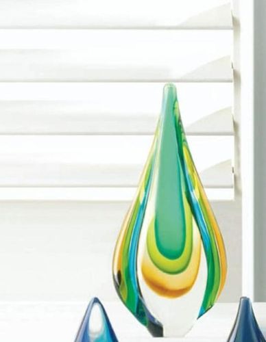 • A drop of color and a splash of style is just what your room needs! This gorgeous art glass statue features a water drop shape that perfectly plays up the shades of yellow, green and blue inside. Each art piece is individually hand-crafted for its unique beauty and therefore might be slightly different from the picture shown here.
