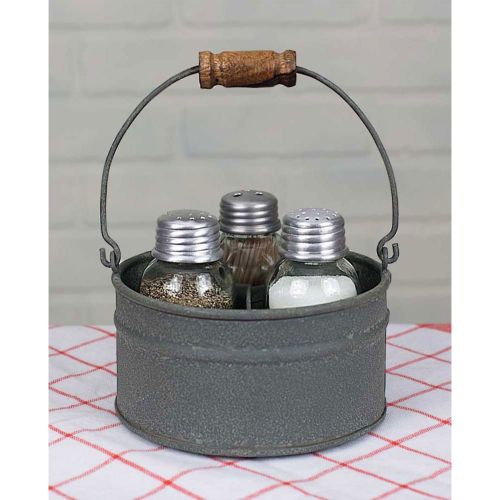 Round Bucket Salt Pepper and Toothpick Caddy - Barn Roof