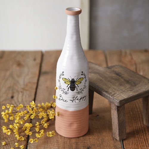 Bee Happy! This vase will have you buzzing about spring! Display alone or with flowers inside. Item is made of ceramic.