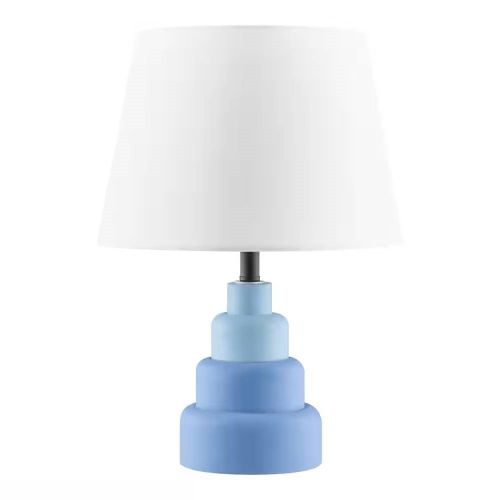 Home > Small Blue Desk Light Table Lamp with White Fabric Shade for Bedside Nightstand
