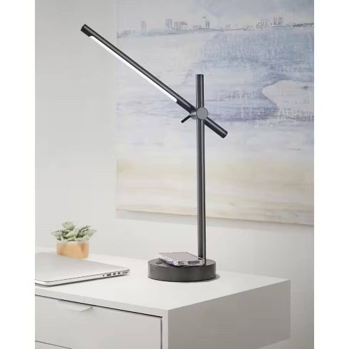 Add a touch of modern elegance and function to your indoor living spaces with this Modern LED Desk Light Table Lamp with Wireless Cell Charging Pad in Black. The black finish is versatile, and will co-ordinate easily with a variety of existing interior decor styles. The long cord with standard plug lets you place this lamp anywhere you want. Use in bedrooms, living rooms, home offices, and more. The integrated LED design is low maintenance, as you will never need to change light bulbs for the life of the fixture. The lamp head can be adjusted and moved for customized, directional task lighting. A wireless charging pad is included on the base of the lamp for charging cell phones and other personal devices. A switch is included on the base for easy on/off control.