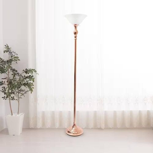 Rose Gold Copper Finish Metal Floor Lamp Torchiere with White Glass Shade