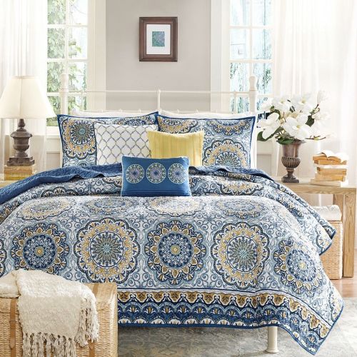 Bring home this Queen size 6-Piece Coverlet Quilt Set in Blue Floral Pattern and enhance the look of your room. This beautiful coverlet set has flowery pattern that adds to the room's overall looks. It is functional and is best for all decors. Beautifully made from polyester microfiber, this coverlet set is extremely soft and durable. This quilted coverlet adds a cooling touch to the rest of the decor. This coverlet set has a brushed polyester reverse side, which is smooth to the touch. The set has a floral pattern that looks beautiful and is attractive. This coverlet set includes one coverlet, two shams, and three pillows. It is warm and great for all weathers. You can add this coverlet set to any bedroom in your home. The set is made with a quilted technique and is smooth and comfortable. This Queen size 6-Piece Coverlet Quilt Set in Blue Floral Pattern can be machine washed on a gentle cycle with cold water. It can then be tumble dried on a low setting. This coverlet set is a great addition for any home.