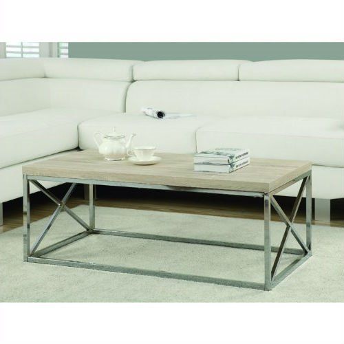 Contemporary Chrome Metal Coffee Table with Natural Finish Wood Top