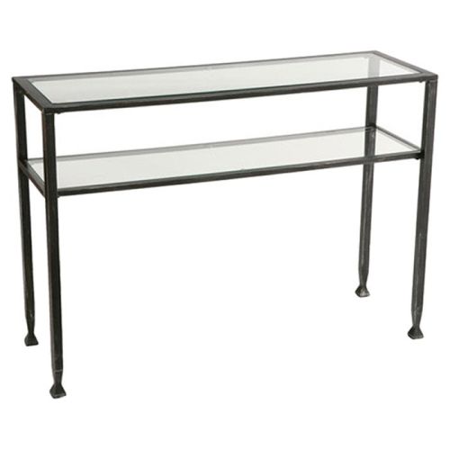 This Metal Glass Top Sofa Table Occasional Console Table with Shelf is an elegant sofa table, which is sure to brighten your existing interiors. The graceful design and purposeful features of this console will ensure that you add lots of style and utility to your room. Best placed against a wall, the table would look good near your entryway as well. Top it with some of your favorite décor items to add a hint of personal touch. The table has metal as its base, which makes it strong and highly durable. The frame of this table is made of a 5mm rectangular metal tube, while the top is made of clear tempered glass. The table has a distressed black finish, which makes it suitable with every interior décor. It stands on four legs for a sturdy base and firm hold. The table also has a shelf at the top that doubles as a storage space for utilities. Add a beautiful frame or a lampshade to make the table look attractive. The table is 30" high, which allows it to comfortably cover your sofa. The table requires assembly and is easy to maintain. It has a capacity of 25lbs., so be sure to load it with light objects. Wipe it occasionally with a dry cloth, to keep away dust and grime.