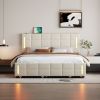 With the design of LED headboard, this bed brings classic atmosphere to your home. The design can make you feel easy and comfortable. This bed provides a fun and adorable place for you. This upholstered platform bed is designed to last for a lifetime as well as maintain its stylish look with clean lines that blend well with the surroundings. This Upholstered bed with trundle under bed is perfect for ones who love sleepovers. Such a versatile piece, bringing functionality, versatility, and style to your home, perfect space saving functionality. 2 big drawers helps to keep the room clean. Use the remote control and mobile APP to control the LED lights, which not only can create a romantic atmosphere for your bedroom, but also can be used as a night light. USB Ports on the headboard can be used to charge Ipad or laptop.