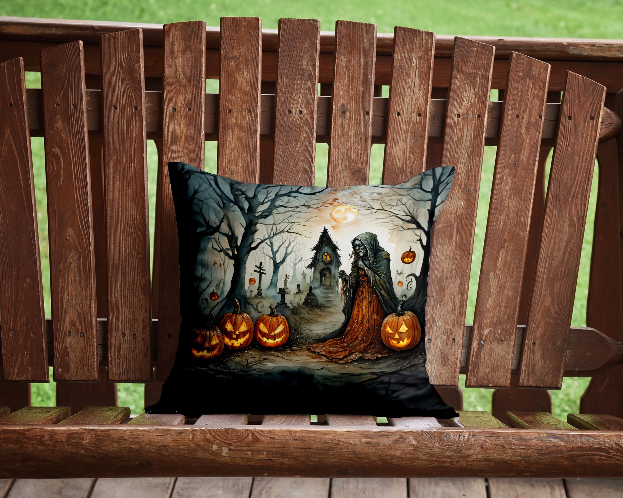 The Weeping Woman Spooky Halloween Throw Pillow Machine Washable, Indoor Outdoor Decorative Pillow for Couch, Bed or Patio, 14Hx14W