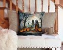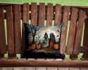 Celebrate Halloween with this Halloween Pillow. Add a touch of vibrancy and comfort to your outdoor seating with Caroline's Treasures Fabric Decorative Pillow. Measuring approximately 14 inches by 14 inches, this outdoor pillow is crafted to elevate the appeal of your patio furniture, infusing it with vivid color and artistic flair. The pillow includes a 100% Polyester Fabric sham filled with a quality pillow form to provide superior comfort. Innovatively made from our brand new material, specifically woven for its water resistance, this pillow is designed for durability. The soft canvas fabric offers versatility in use, fit for your indoor couch or your outdoor patio, porch, or veranda. The fabric is dyed with colorfast dyes built for resilience against weather conditions, ensuring the pillow retains its beauty over time. Constructed by sewing three fabric pieces to create a sham, the polyester insert is then nestled inside to form the pillow, resulting in an overstuffed pillow that maintains its shape. Both the sham and the pillow insert are proudly made in the United States. As the pillows are handcrafted, there may be minor variations in size, further enhancing their unique charm. Experience comfort in style with Caroline's Treasures Fabric Decorative Pillow.