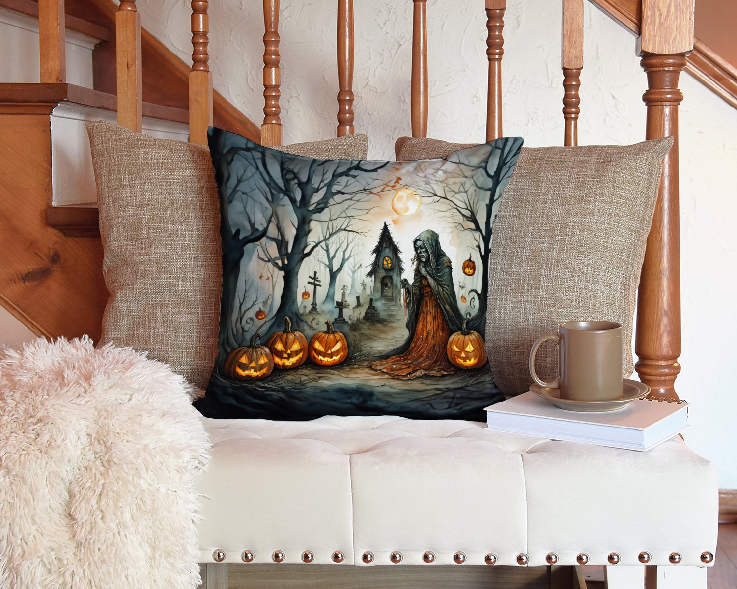 Home > The Weeping Woman Spooky Halloween Throw Pillow Machine Washable, Indoor Outdoor Decorative Pillow for Couch, Bed or Patio, 14Hx14W
