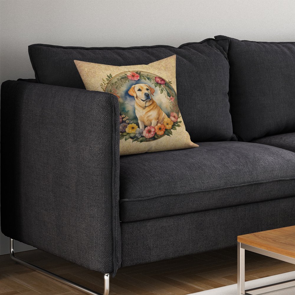 Home > Yellow Labrador Retriever and Flowers Throw Pillow Machine Washable, Indoor Outdoor Decorative Pillow for Couch, Bed or Patio, 14Hx14W